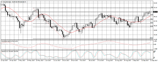تتداولأسعارالنفطعندمستوى50.71$ للبرميل , حيث ارتد السعر نحو الاتجاه الصاعد بعد ان نجح فى اختراق مستوى المقاومة كما هو بالرسم.