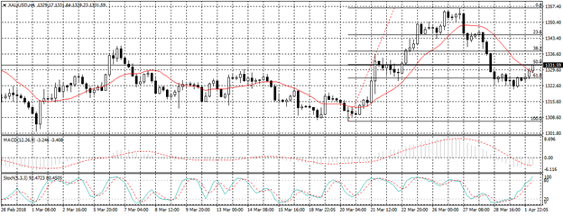 ارتد سعر الذهب ونحو الاتجاه الصاعد مستهدفا مستوى خط الفيبو 50 ليتداول عند السعر 1331.00$ للاوقية كما هو موضح بالرسم.