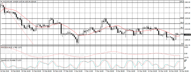 ارتد الذهب نحو الاتجاه الصاعد مستهدفا مستوى المقاومة عند خط الفيبو 23 ليتداول عند السعر 1316.50$ للاوقية كما هو موضح بالرسم. وفي حال استطاع السعر الثبات