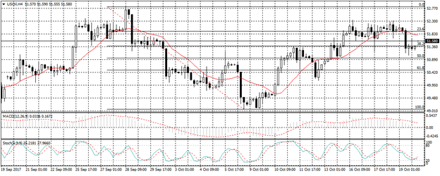 وتتم التداولات الآن أسفل مستوى خط مؤشر متوسط الحركة , ويظهر كل من مؤشر ماكد ومؤشر استوكاستك تقاطع سلبى نحو الاتجاه الهابط على الاطار الزمنى أربع ساعات