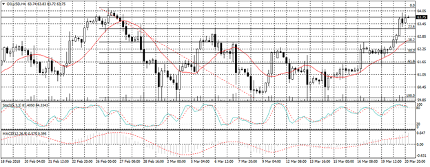 ويتداول النفط الآن أعلى خط مؤشر متوسط الحركة , ويظهر كل من مؤشر استوكاستك ومؤشر ماكد تقاطع ايجابي نحو الاتجاه الصاعد على الاطار الزمنى اربع ساعات