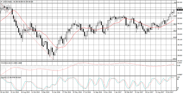 وتتم التداولات الآن أعلى مستوى خط مؤشر متوسط الحركة , ويظهر كل من مؤشر ماكد ومؤشر استوكاستك تقاطع ايجابى نحو الاتجاه الصاعد على الاطار الزمنى الاسبوع