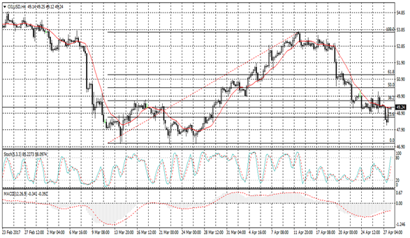 تتداول أسعار النفط عند مستوى 49.24$ للبرميل , حيث ارتد السعر نحو الاتجاه الصاعد بعد ان فشل فى اختراق مستوى الدعم بالتزامن مع خط الفيبو 23 كما هو موضح بالرسم.