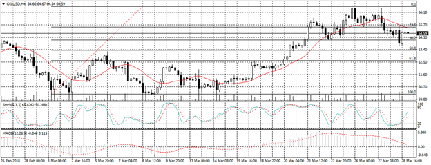 ويتداول النفط الآن عند خط مؤشر متوسط الحركة , ويظهر كل من مؤشر استوكاستك ومؤشر ماكد تقاطع ايجابي نحو الاتجاه الصاعد على الاطار الزمنى اربع ساعات