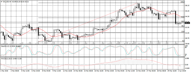 ويتداول النفط الآن أسفل خط مؤشر متوسط الحركة , ويظهر كل من مؤشر استوكاستك ومؤشر ماكد تقاطع سلبي نحو الاتجاه الهابط على الاطار الزمنى اربع ساعات