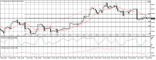 ويتداول النفط الآن أسفل خط مؤشر متوسط الحركة , ويظهر كل من مؤشر استوكاستك ومؤشر ماكد تقاطع سلبي نحو الاتجاه الهابط على الاطار الزمنى اربع ساعات
