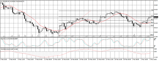 ويتداول النفط الآن أعلى خط مؤشر متوسط الحركة , ويظهر كل من مؤشر استوكاستك ومؤشر ماكد تقاطع ايجابى نحو الاتجاه الصاعد على الاطار الزمنى اربع ساعات