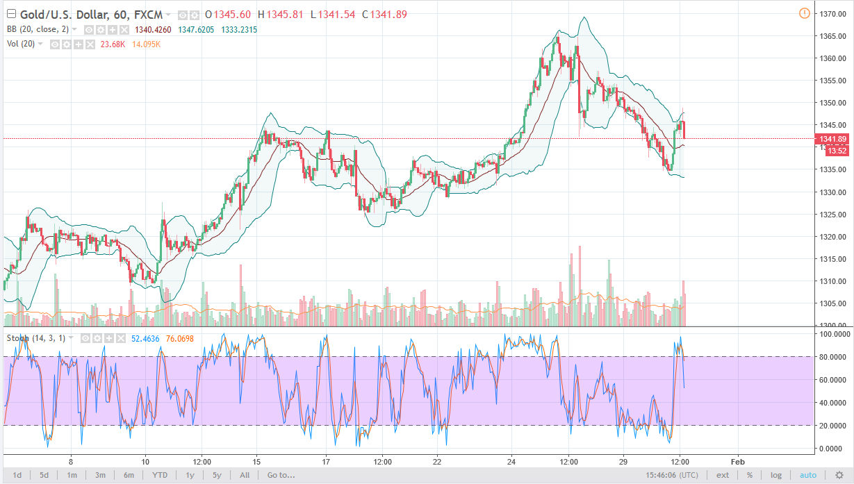 تراجعت أسواق الذهب قليلا أثناء الجلسة يوم الثلاثاء لتصل إلي مستوي 1335 دولار بأدني و الذي كان مقاوما في السابق. لا يعتبر إرتدادنا من هناك مفاجأة كبري و