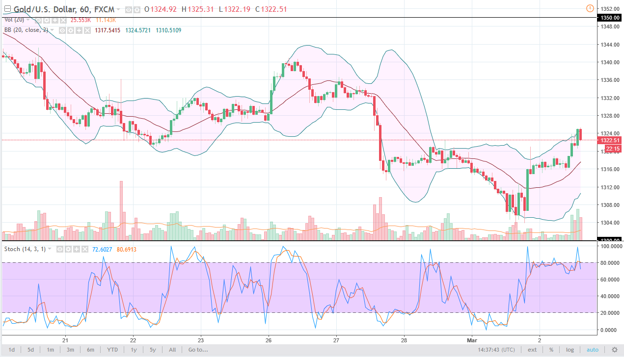 صعدت أسواق الذهب قليلا أثناء جلسة التداول يوم الجمعة حيث عاد الخوف إلي السوق علي أساس فرض الرسوم الجمركية علي واردات الصلب و الالومنيوم إلي الولايات المتحدة. هناك مخاوف من حدوث نوع من أنواع الحروب التجارية و سيجلب ذلك إلي تجنب المخاوف إلي السوق و هو أمر جيد للذهب. أعتقد أن تلك السوق سوف ترتفع و ربما تصل إلي مستوي 1340 دولار ثم مستوي 1350 دولار. أؤمن بالذهب علي المدي الطويل ، و سوف يسكب ذلك وقود إلي النار فقط.