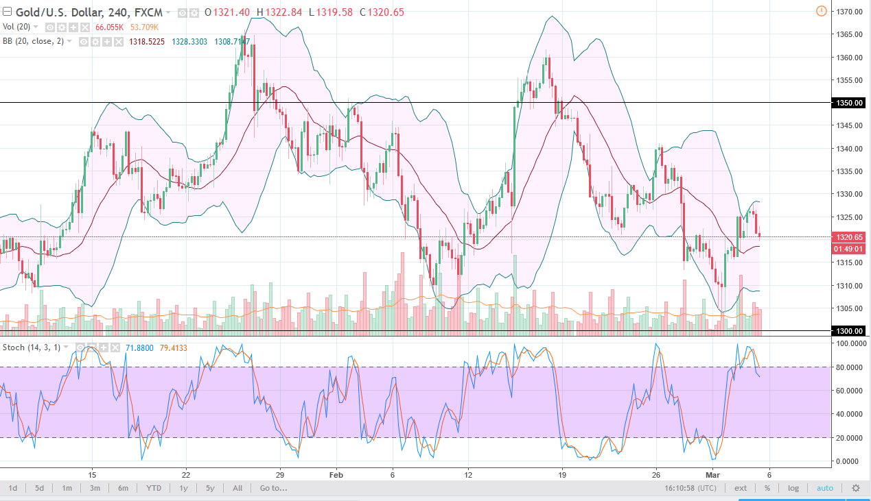 لازالت أسواق الذهب تشهد التقلبات و أعتقد أن السوق تحتاج للوصول إلي مستوي أعلي جديد في الرسم البياني للساعة حتي أبدأ في وضع الأموال للتداول و لكن عندما يحدث ذلك قد نتجه إلي مستوي 1340 دولار بعد ذلك ثم مستوي 1350 دولار. أعتبر مستوي 1300 دولار بأدني الأرضية الكبري في تلك السوق و أعتقد أنه ينبغي أن يتماسك حتي يستمر الميل الصعودي. إذا إخترقنا مستوي 1300 دولار هبوطا قد تتراجع السوق إلي مستوي 1275 دولار.