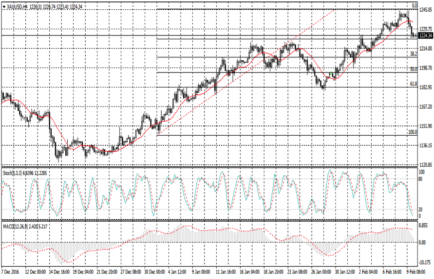 تتداول أسعار الذهب عند مستوى 1224,35 دولار أمريكى للأوقية , حيث ارتد السعر نحو الاتجاه الهابط مستهدفا خط الفيبو 23 على الاطار الزمنى اربع ساعات كما هو موضح بالرسم